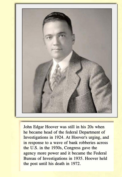 The Federal Bureau of Investigation did not yet exist, but a young J. Edgar Hoover headed a federal investigative unit with limited powers and a small number of agents who did not even carry guns. In response to the wave of bank robberies across the country -- not just Dillinger's crew, but others as well -- Congress beefed up its enforcement powers and made it a federal crime to rob a federally insured bank. That and the Dyer Act (covering stolen vehicles crossing state lines) gave Hoover sufficient jurisdiction to join city and state police in the hunt for bank robbers.