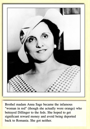 And so it was that Anna Sage became the infamous "woman in red" who betrayed John Dillinger. Actually, she wore a bright orange skirt, not a red dress, but newspaper writers of the 1930s weren't sticklers for accuracy if it got in the way of a good story.