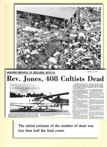 That was on Nov. 18, 1978, in Guyana, South America, where Jones and his flock had built a community nicknamed "Jonestown." In the days that followed, Americans followed the news in horror as photos and video from helicopters showed a panorama of dead bodies sprawled and already bloated in the tropical sun.
