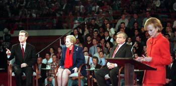 2-18-1998 -- Three top Clinton Administration officials -- U.S. Secretary of State Madeline Albright, Defense Secretary William Cohen and National Security Adviser Sandy Berger -- came to Ohio State University for a "town hall" meeting on the Administration's plan for military strikes against Iraq if diplomatic efforts fail. However, the meeting -- which was broadcast live by CNN around the world -- was repeatedly interrupted by hecklers. 2-18-1998 -- Montgomery County Coroner James H. Davis ruled homicide as the cause of the deaths of three children at 633 Homewood Ave. The three children died within weeks of each other. 2-20-1998 -- Fifteen-year-old Tara Lipinski won the the gold medal in figure skating, defeating rival Michelle Kwan, who won the silver.