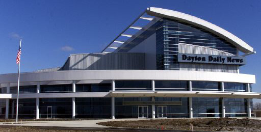 In the Spring of 1999, barely six months after celebrating its centennial, the Dayton Daily News began printing operations at its new Print Technology Center, the most advanced newspaper printing plant in North America. The $91 million printing plant, is located on 43 acres at 5000 Commerce Way, Franklin. The industrial park extends along I-75 north of the Ohio 73 interchange. During a five-month transition period the paper is operating both the new plant and the old press at its historic 1910 building at Fourth and Ludlow streets. When the PTC is fully operational in September 1999 about 250 production workers will work at the Franklin facilty while most of DDN's 950 employees would remain downtown or at area bureaus and distribution centers. News and advertising data are transmitted by fiber-optic cable from DDN's downtown headquarters to the PTC, where printing plates are made and mounted on presses six-stories tall. The presses were manufactured by Koenig & Bauer-Albert AG of Wurzburg, Germany. The building was designed by Cleveland architect Celso Gilberti. |  An interior view of the new pressroom. DDN PHOTO - SKIP PETERSON