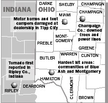 Click below to generate a search on the Dayton Daily News library for more on this topic. | See also our Tornado factfile | File Created: 4-10-1999 Prepared by: Dayton Daily News Library staff Sources: DDN reports