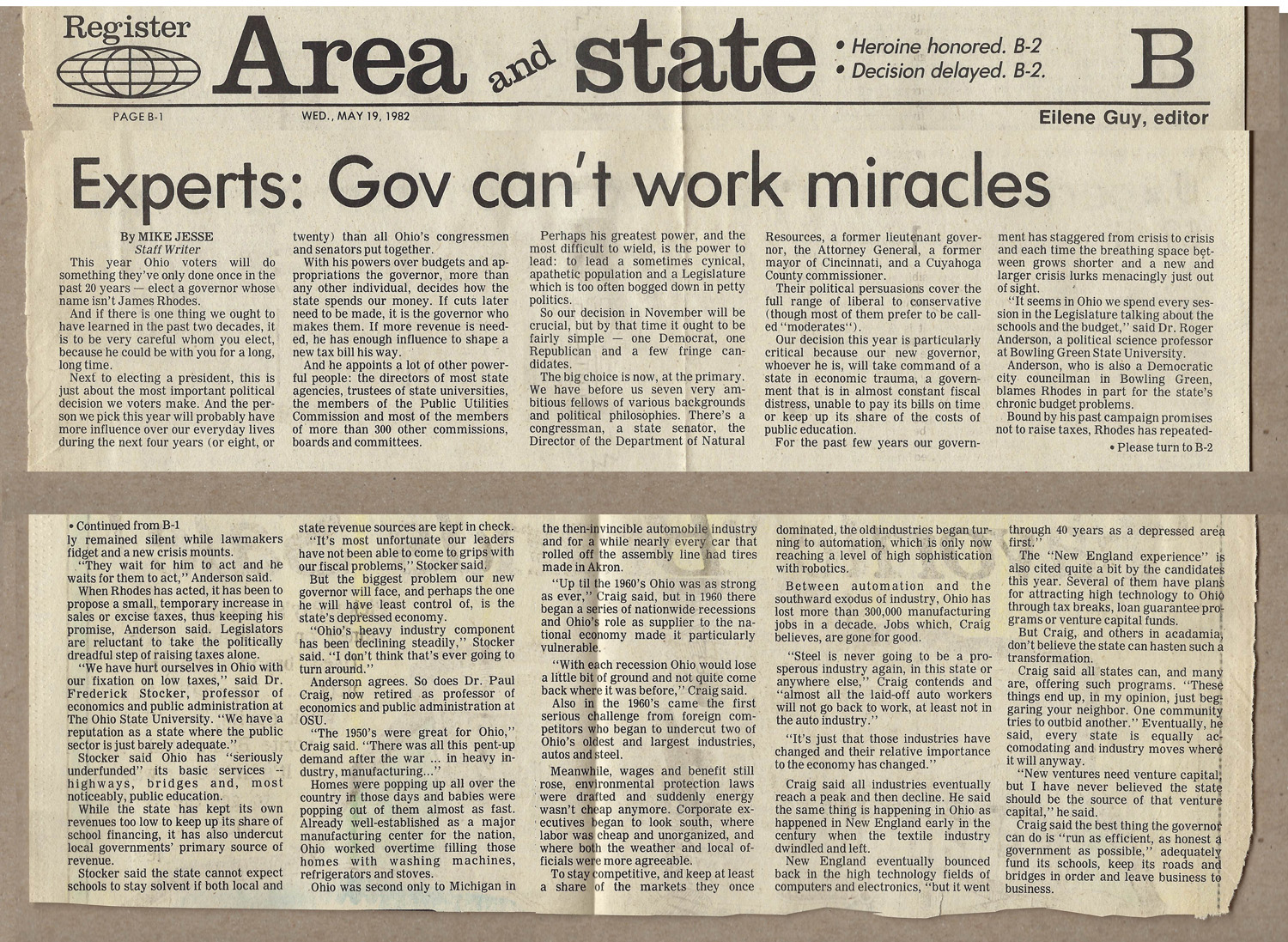 I initially went to Sandusky on a three-month internship, which was my last academic requirement to complete my degree, and I still have the weekly internship reports I sent back to my professors. When the internship period was over, the Register hired me as a regular staffer.