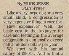There were perhaps a dozen people on the staff. The editor was Jim Brown, a tall plump man in his 30s with sandy hair and a mustache. The city editor, Denny, was very thin but had a booming voice that could be heard across the newsroom. When an irate reader called to complain about something that was in the paper, the call would be forwarded to Denny, who would listen for a moment and then loudly tell the caller what an idiot he must be to have misunderstood the article so stupidly, and he would proceed to give a civics lecture on the finer points of freedom of the press which, he would note repeatedly, the caller was apparently too much of a moron to have learned in school.