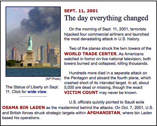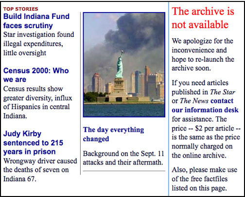 On the afternoon of Sept. 11, 2001, we started work on a set of pages related to the terrorist attacks in New York and Washington on that day. One of those pages was a list of those who were killed, which included a handful of people from Indiana. We used the Associated Press list and kept ours updated as AP updated theirs.