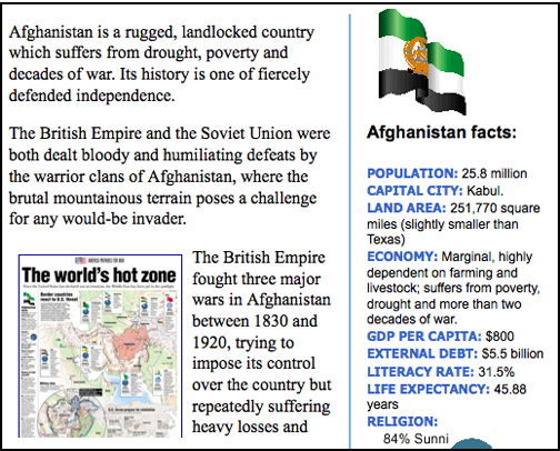 Two of the entry points into individual Factfile pages. These examples are from about 2001, but they would have changed over time.