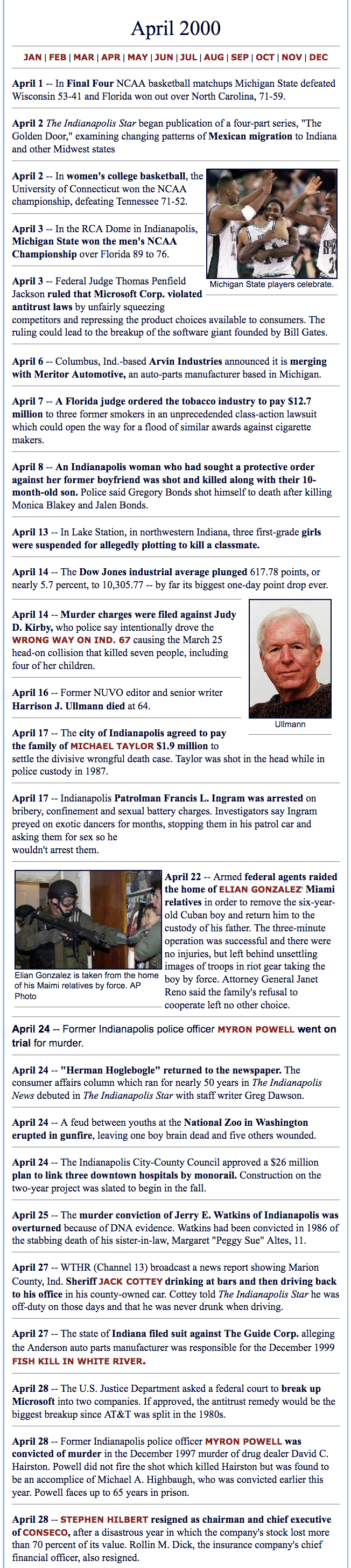This is a screenshot of one of the Timeline pages my team maintained in the early 2000s.