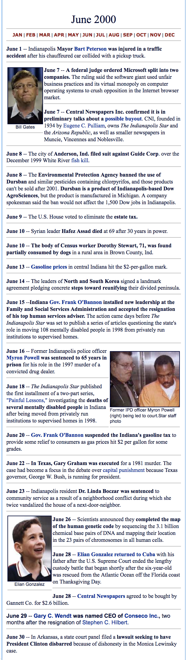 This is a screenshot of one of the Timeline pages my team maintained in the early 2000s.