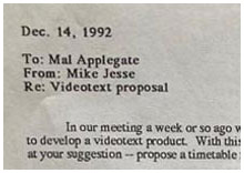 Apart from the Internet itself, anyone might set up a file server and give computer users dial-up access to it. A couple of newspapers had tried doing this, and it was known as "videotext." All newspapers published movie reviews, gardening columns, and so the idea was to compile those in directories and let users view them in Gopher fashion. As technologically limited as that was, it represented a great opportunity for newspapers because of the vast amount of information they gathered every day. I wrote a proposal advocating that we launch a videotext program. It was well received by the publisher, and maybe it would have happened, but at right about this time, I was offered the library director job at the Dayton Daily News, and so I left Indianapolis before that might have happened. Soon after this, the World Wide Web emerged, and the modern Internet was born. I would spend the next 20 years pursuing one version of this project or another, and I had some success, but it never gained traction in the industry at large. I don't want to sound like an old man shaking his fist and saying, "If they'd only listened to me!" but I do believe that the history of the newspaper industry in my lifetime could have played out very differently if this type of approach had been adopted. |