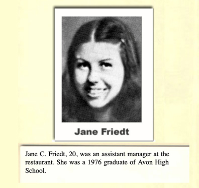 Jayne Friedt, 20, was the assistant manager on duty that night. The other employees were Ruth Shelton, 17, Daniel Davis, 16, and Mark Flemmonds, 16. They were scheduled to stay a couple of hours past closing to clean up and get things ready for the morning shift.