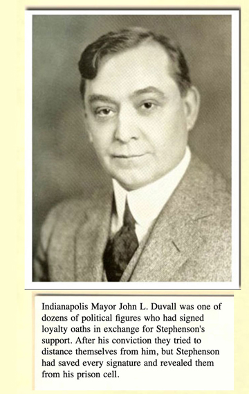 Stephenson had probably expected to be pardoned by his friend, Gov. Ed Jackson whom Stephenson had gotten elected. He'd gotten a lot of people elected, including the new Indianapolis mayor, John L. Duvall.
