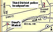 4:50 p.m.: An officer shows up at Third District Headquarters wearing a black band over his badge, signifying mourning.