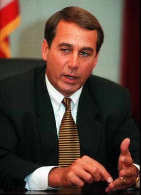 Rep. John A. Boehner -- U.S. congressman representing the Eighth District Republican John A. Boehner (pronounced BAY-ner) was first elected to Congress in 1990, defeating Gregory V. Joliviette, after serving three terms in the Ohio Legislature. He quickly gained national attention as one of the Gang of Seven, a rabble-rousing band of freshman representatives. The group assaulted sacred cows, most notably by insisting upon wide publicity of theHouse banking scandal. The gang wanted names named for every member who had overdrafts on their House bankingaccount. People were embarrassed, elections were lost, and the House bank was closed forever. When the Republicans took control of the House in the 1994 election Boehner, a close confidant and ardent supporter of House Speaker Newt Gingrich, became chairman of the Republican Conference and lined up the party's troops to vote for the Contract With America legislation during thelegislative session's first 100 days. |  |